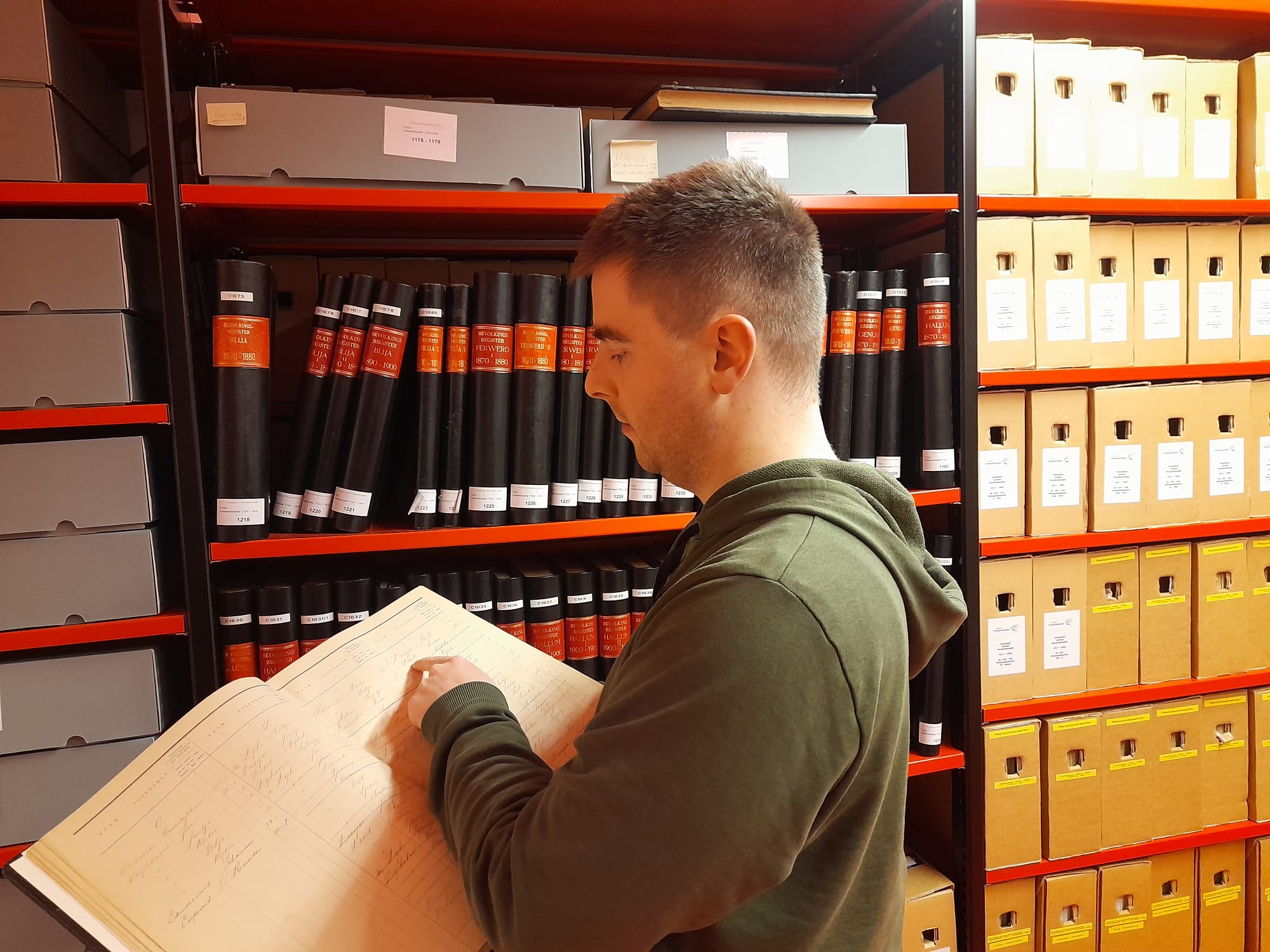 Zijn liefde voor archieven uitte hij eerst in vrijwilligerswerk. Later in betaald werk als scanoperator, maar het daarbij gewenste werktempo bleek te hoog. Een beroepentest via Stam wees uit, dat een functie als postkamermedewerker aansluit op Kevin zijn mogelijkheden. En zo geschiedde: hij ging aan de slag in een postkamer, en met succes. Toch bleef de wens om dichter bij huis te werken en in een archiefomgeving actief te zijn.